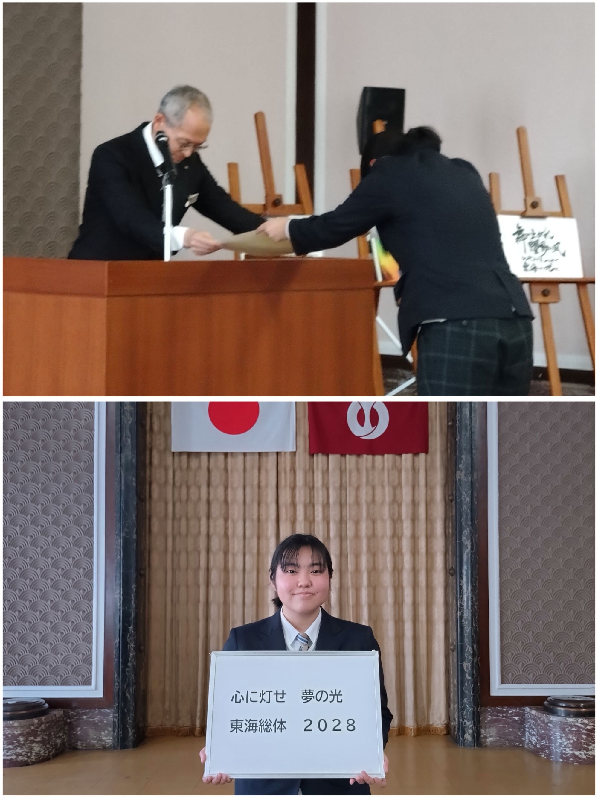 静岡県立浜松江之島高校 中村優月さんの作品が 最優秀賞に選ばれました。下の写真は表彰式の様子です。